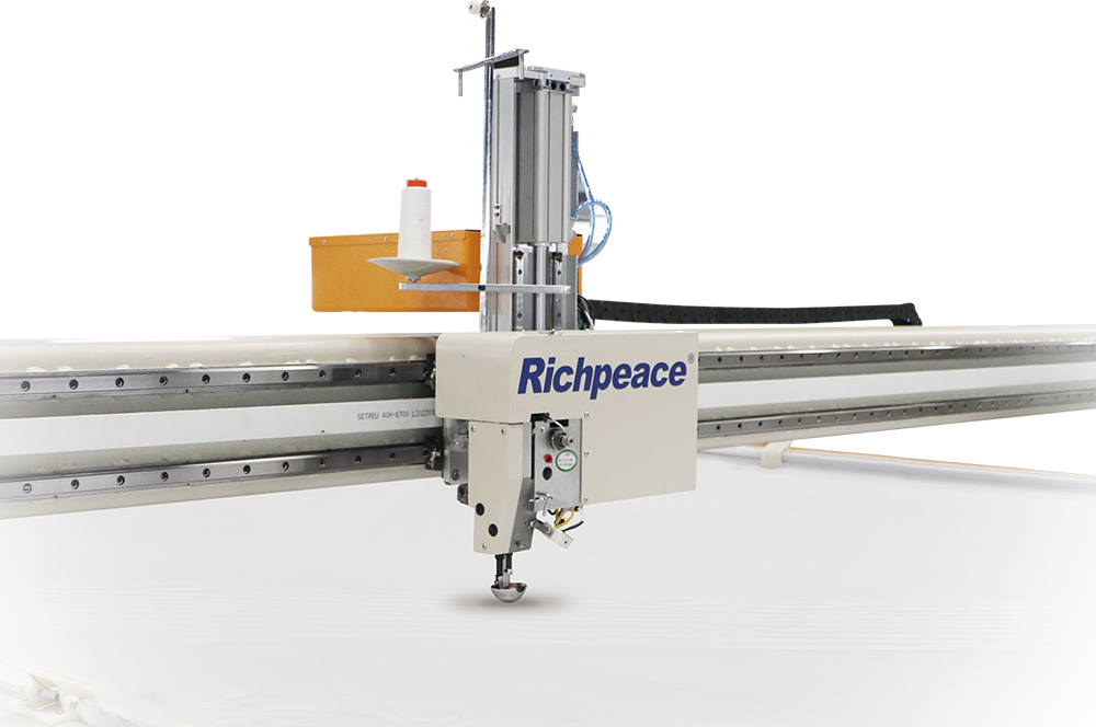 3、自動升降機頭,絎完一床物料后,機頭自動升起,方便更換料框。