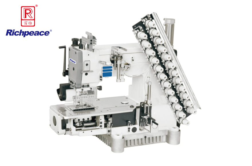 完全自動給油,勾針縱向運動機構(gòu),筒型方便圓型衣物之縫紉,此機型可依要求之縫制款式,間隔尺寸做多樣針位變化車縫。適用于高級衣物之裝飾車縫。